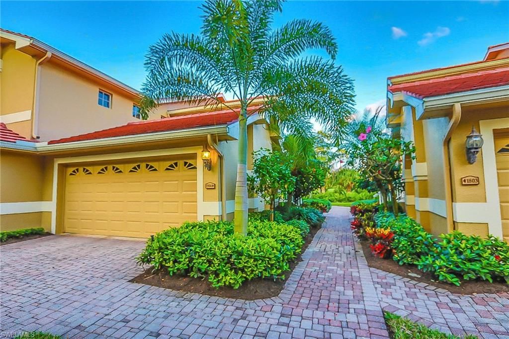 Beautiful bright and airy 1ST FLOOR, END UNIT coach home available here in the most prestigious Estero golf & country club community - Grandezza. This mature full time gates community boasts some freshly remodelled and extravagant amenities such as club room used for all kinds of social events, entertainment, and lunch/brunch/dinners, a cafe/bar pub menu downstairs (a great stop for refreshments after shooting 18 holes), a cabana bar/grill area with many private events and entertainments, tennis courts, 18 hole golf course, putting greens and driving ranges, yoga studio, kids playground, basketball courts, bocce ball, beautiful state of the art fitness center, locker room with showers and sauna's. This condo features many upgrades such as fresh paint throughout, brand new AC unit in 2020, travertine tile laid and polished in all bedrooms, brand new roof on all buildings, upgraded fans and light fixtures, beautiful preserve and golf course views as well as all faux window treatments throughout. 3 bedrooms situated in a split bedroom floor plan, guest are comfortable within their own quiet coridor! Den or 3rd bedroom featuring double doors and a large walk in closet.